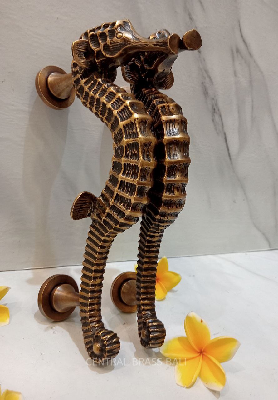 Whether adorning the entrance to your beach house, seaside cottage, or coastal retreat, this seahorse door handle evokes the spirit of the ocean, inviting guests to embark on a journey of relaxation and serenity. Its antique brass finish adds a touch of vintage allure, complementing a range of interior decor themes with its classic charm.